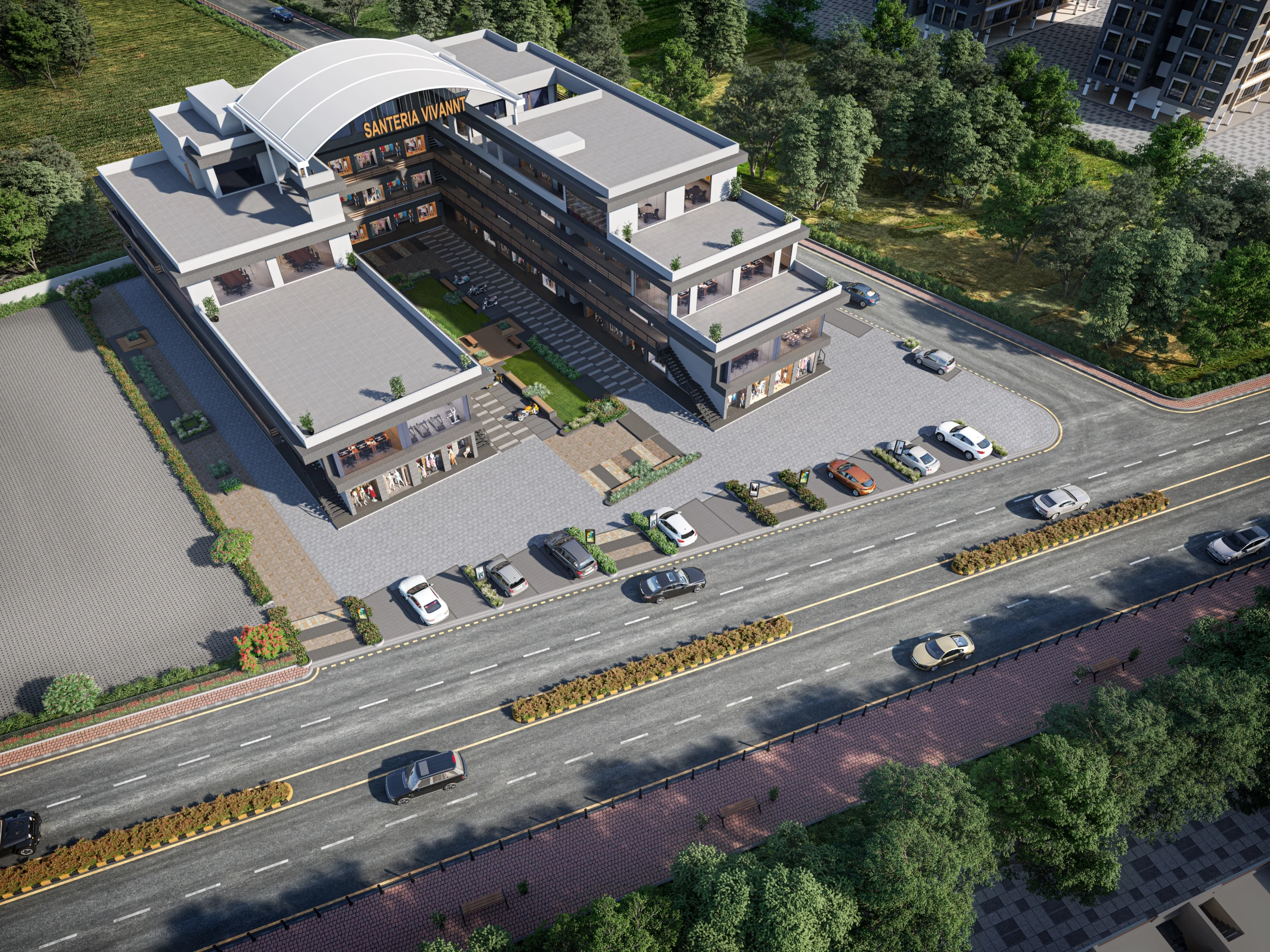 Santeria Vivannt is a prime commercial real estate project by Santeria Infra, located on Masma-Orma Road in Surat, Gujarat, offering shops, offices, and showrooms starting from affordable prices (around ₹12.55 Lakh) with high investment potential. Key features include modern amenities like power backup, CCTV, lifts, strategic high-traffic location, and suitability for diverse businesses, aiming to provide a launchpad for growth.